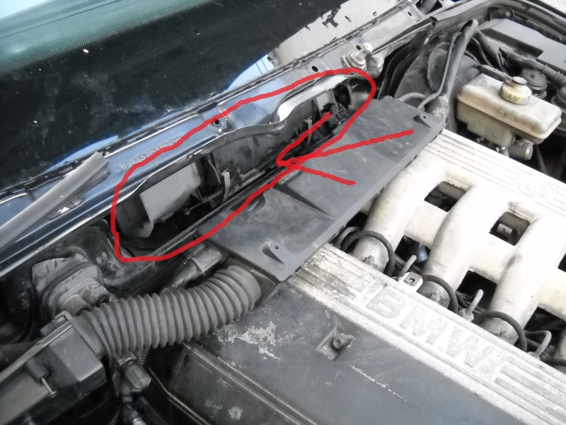 - j'ai débouché les évacuations qui permettent à l'eau de pluie de s'évacuer (vers le compartiment moteur)