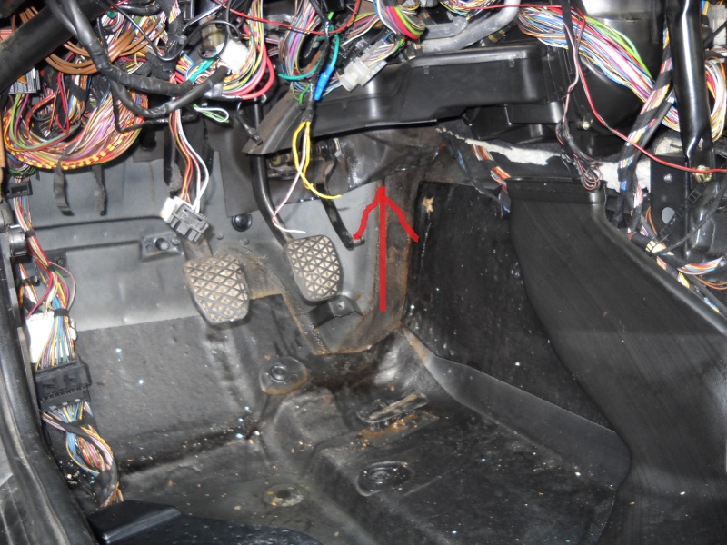 En faisant couler de l'eau par l'endroit que j'ai pris en photo (photo n°1) l'eau coule à l'intérieur de l'habitacle au niveau du passage de la boite de vitesse (photo n°2) .