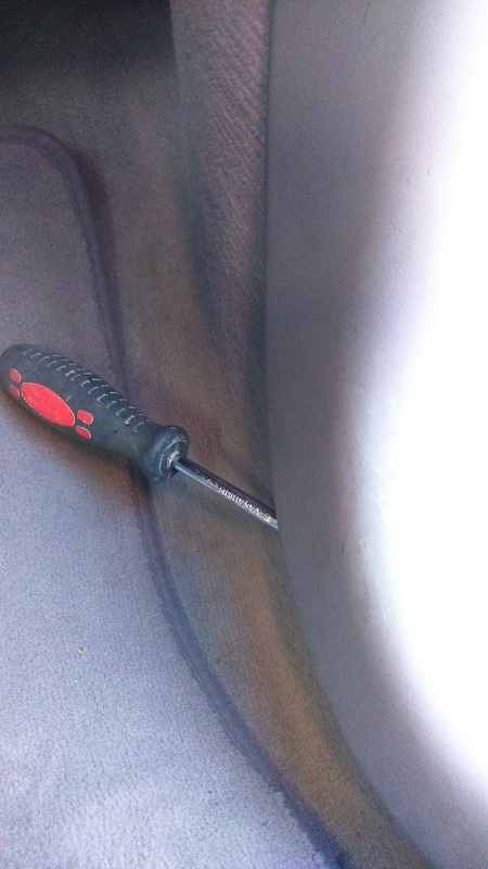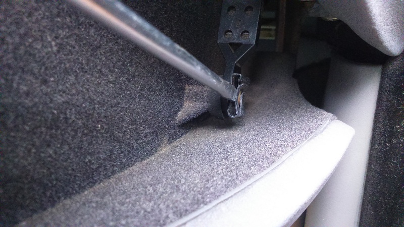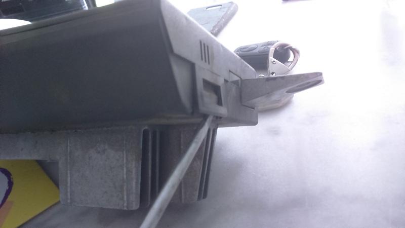 2/ Dégrafer le cache latéral, en passant délicatement un tournevis plat ,et faire levier sur l’agrafe.