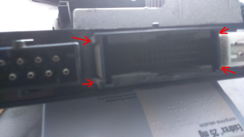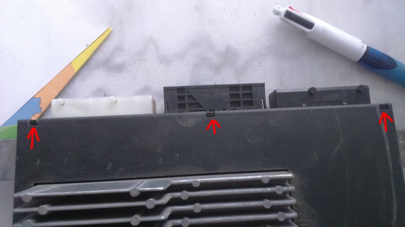 3/ Declipser l’autre demi coque, broche centrale, appuyer sur les 4 languettes
