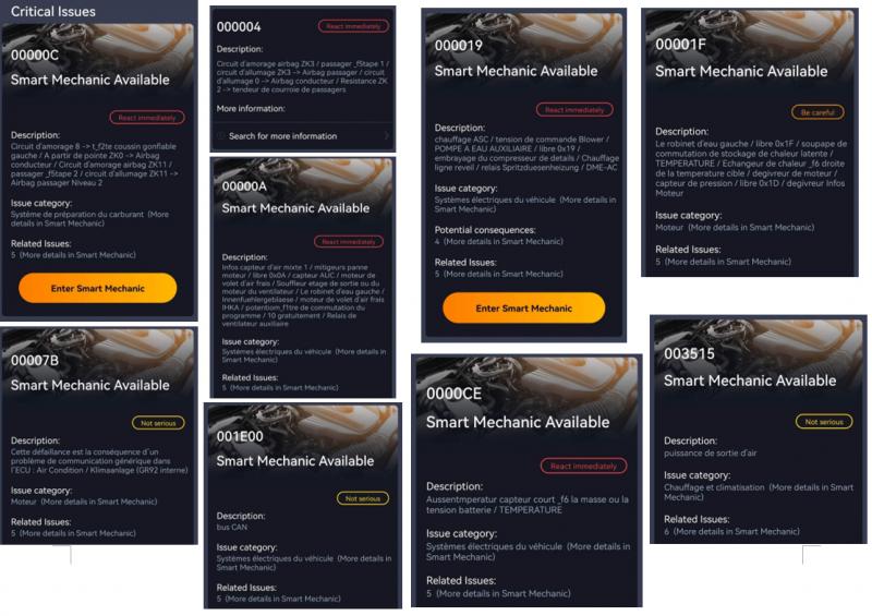 Un collègue a inséré le Carly sur ma prise OBD et voici les défauts qui ressortent..