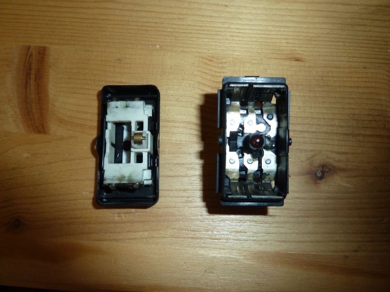 Par contre je ne suis pas certain que se soit des diodes dans les interrupteurs arrières car j'en ai acheté 2 jeux et elles sont toutes grillées or des LED grillent rarement. J'en ai d'ailleurs ouvert un pour voir dedans s'il y avait bien, du coup, une lampe et voilà ce qu'on y voit: