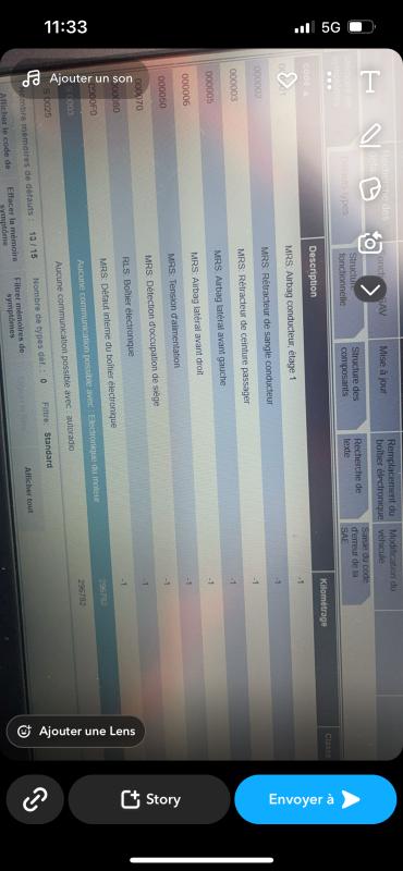 Il me mets que tout les airbags sont en défaut orange, et en rouge volant stage 2, et sensitives siège 1.