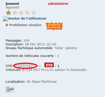 Merci de transmettre votre N° VIN. Dans votre intérêt !