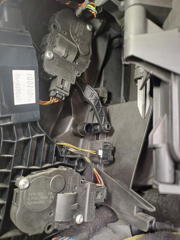 Je me suis rendu compte que en appuyant sur les boutons de la console, pour orienter le flux d'air choisi, il n'y a aucune action des volets, ils restent fermés. Pour être sur, j'ai poussé un petit peu sur celui au niveau des pieds, et la l'air est sorti à fond, donc bien un problème de commande de volets